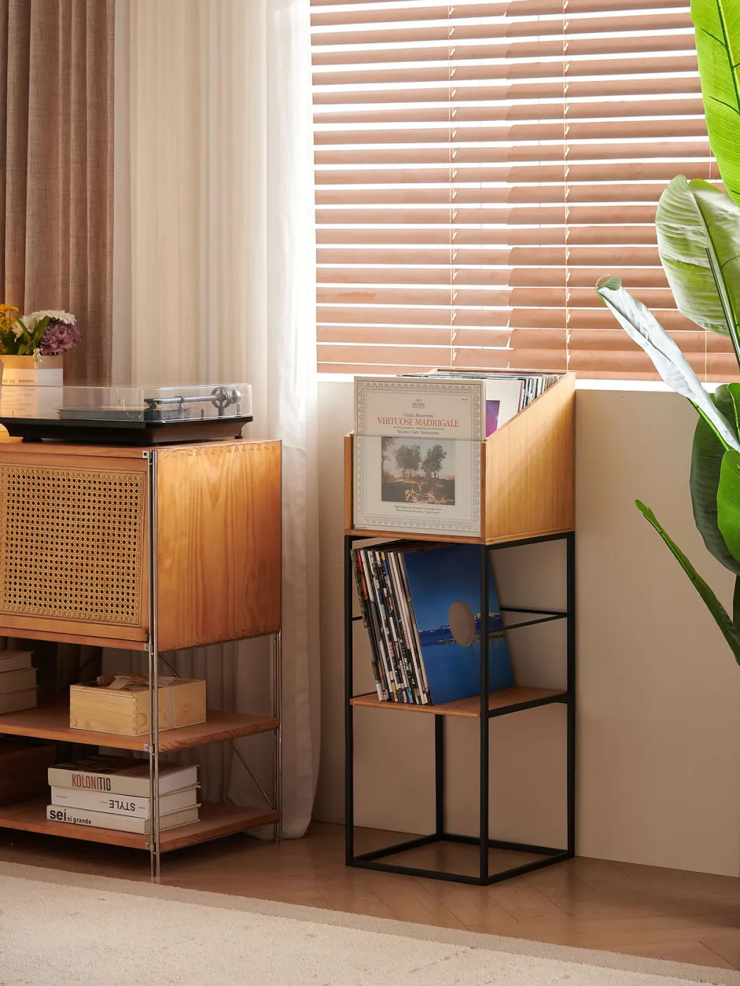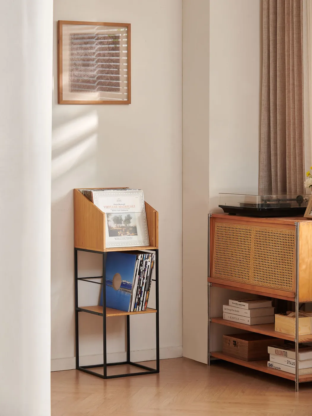 The Vinyl LP Stand features two distinct storage spaces: