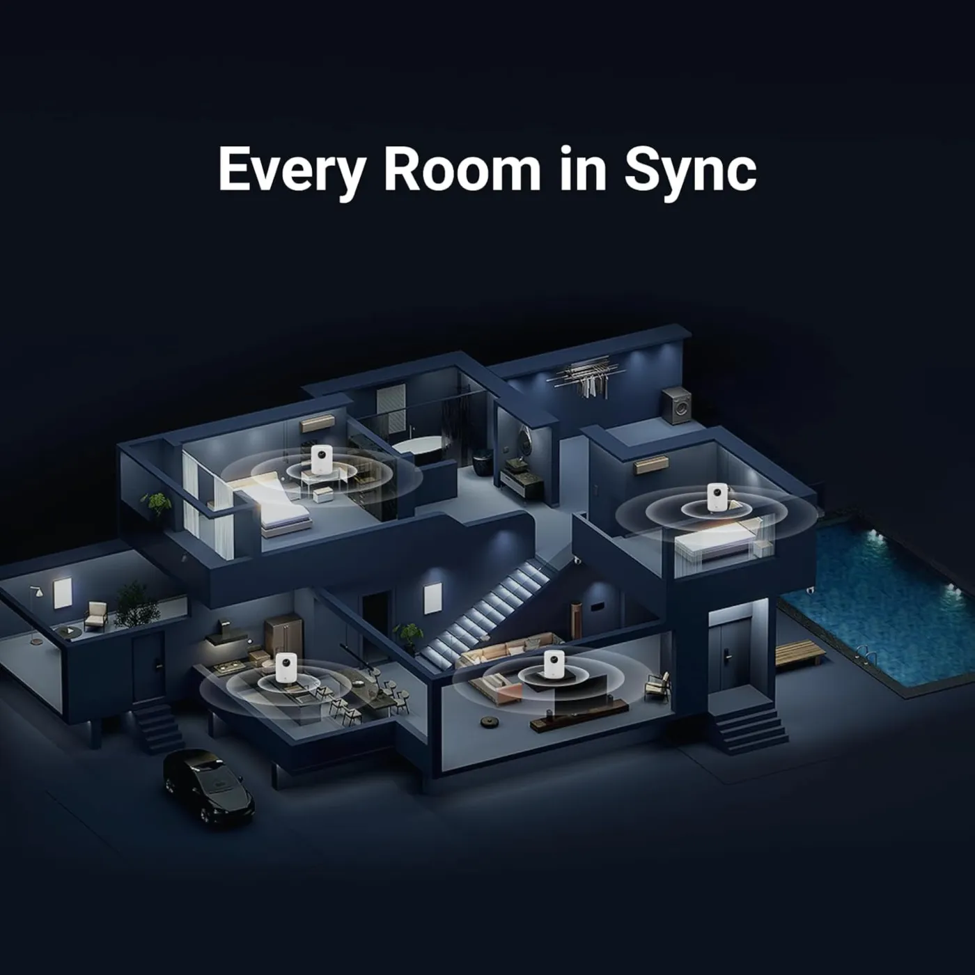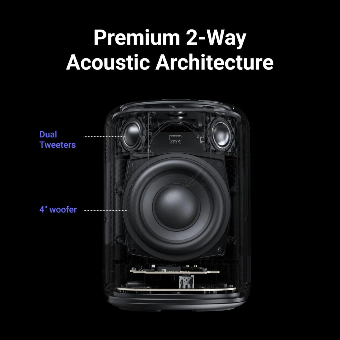 - AI RoomFit calibration - One tap optimizes sound for your space and placement—balanced bass, clean vocals, and engaging detail wherever you set it.