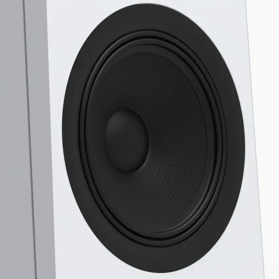Low and mid frequencies are handled by a new 7-inch long-throw driver with a Curv diaphragm capable of impressive bass output. Its sophisticated motor combines a robust ferrite magnet with three shorting rings (two aluminum and one copper) to control inductance and minimize distortion. Second-generation Dual-Wave suspension enables a wide operating bandwidth and suppresses intermodulation distortion at large excursions, while working in perfect harmony with the Curv diaphragm to control midrange resonances.