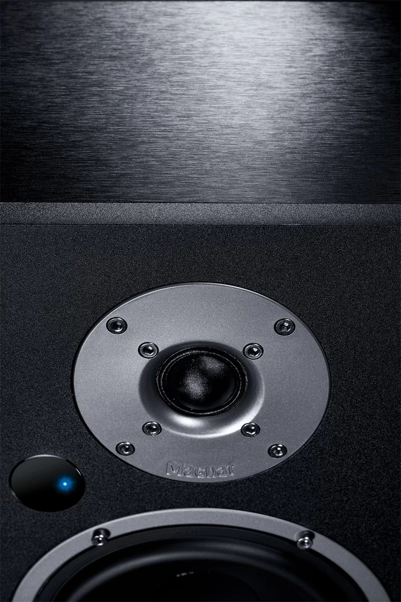 Anyone who has ever wondered whether there are any multi-functional and fully active speakers in fully-fledged dimensions can now answer their question with a resounding yes. With the same front width as the 3A, the Monitor Reference 5A stands 908 mm tall, making it a full-size floorstanding speaker. This format leaves you in no doubt as to whether you have a real hi-fi system in front of you.