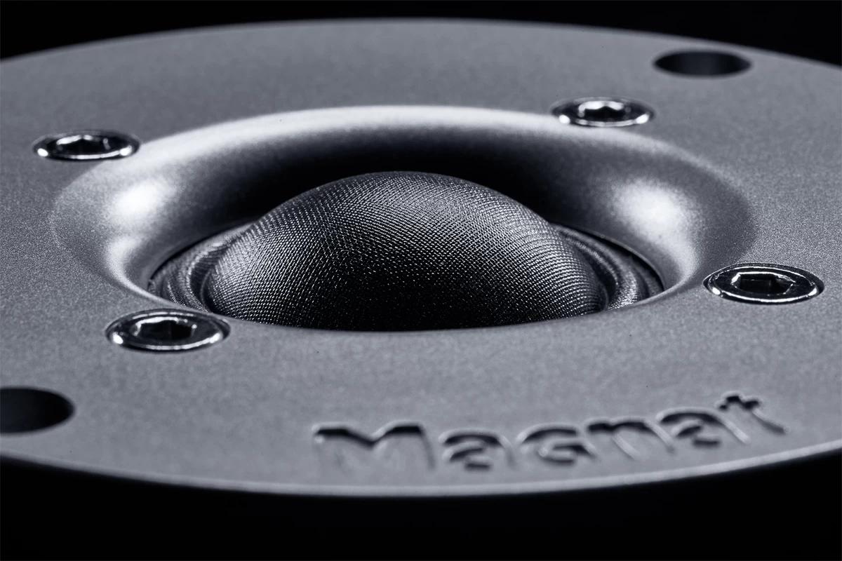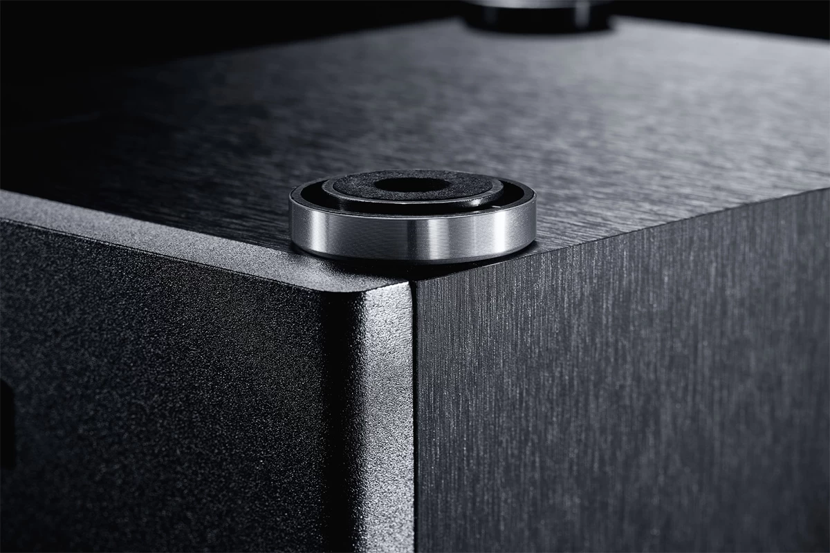 The tweeter dome measures 25 mm (like its siblings) and is driven by the tried and tested, powerful ferrite magnet. Underneath there are two 170 mm chassis. One caters for the all-important vocal range as a bass-midrange driver, while the second is designed purely for reproducing the deep bass range. The use of materials really makes an impact here - the floorstanding speaker of the Monitor Reference series delves right down to a frequency of 28 Hz. Nevertheless, the 5A boasts a slim visual appearance and can therefore be set up in any living room environment.