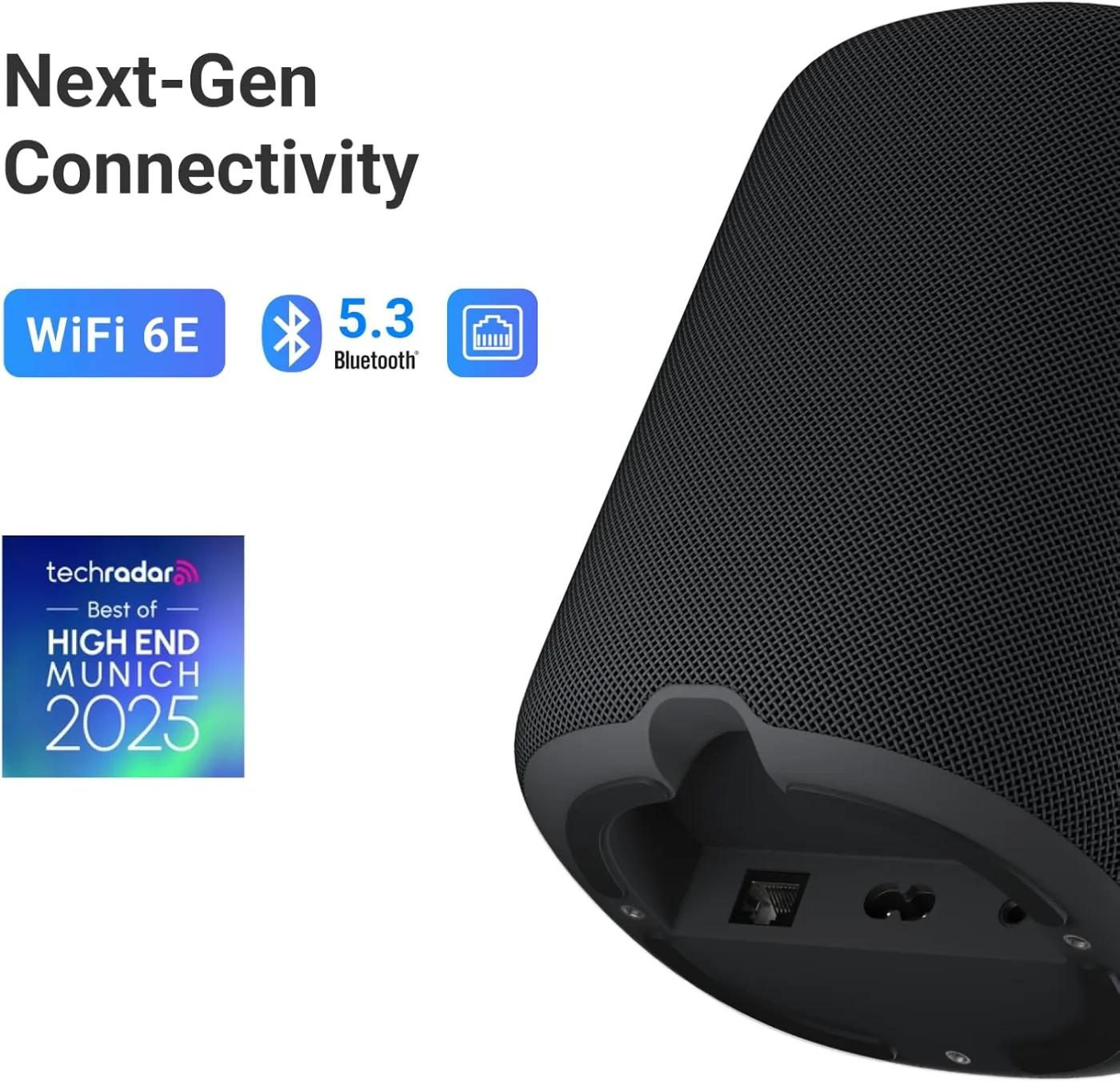 - AI RoomFit calibration - One tap optimizes sound for your space and placement—balanced bass, clean vocals, and engaging detail wherever you set it.