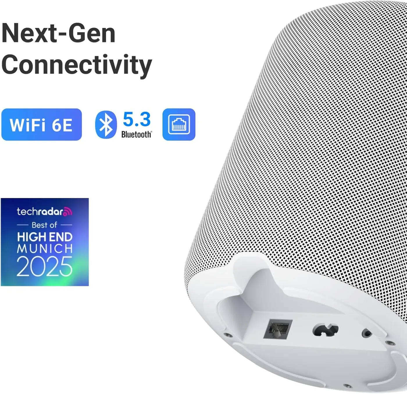 - Stereo & Cinema‑Ready - Pair two for true L/R stereo; add WiiM Sub Pro for deeper, tighter bass or combine with compatible WiiM components as center/surround for an immersive home‑theater setup.