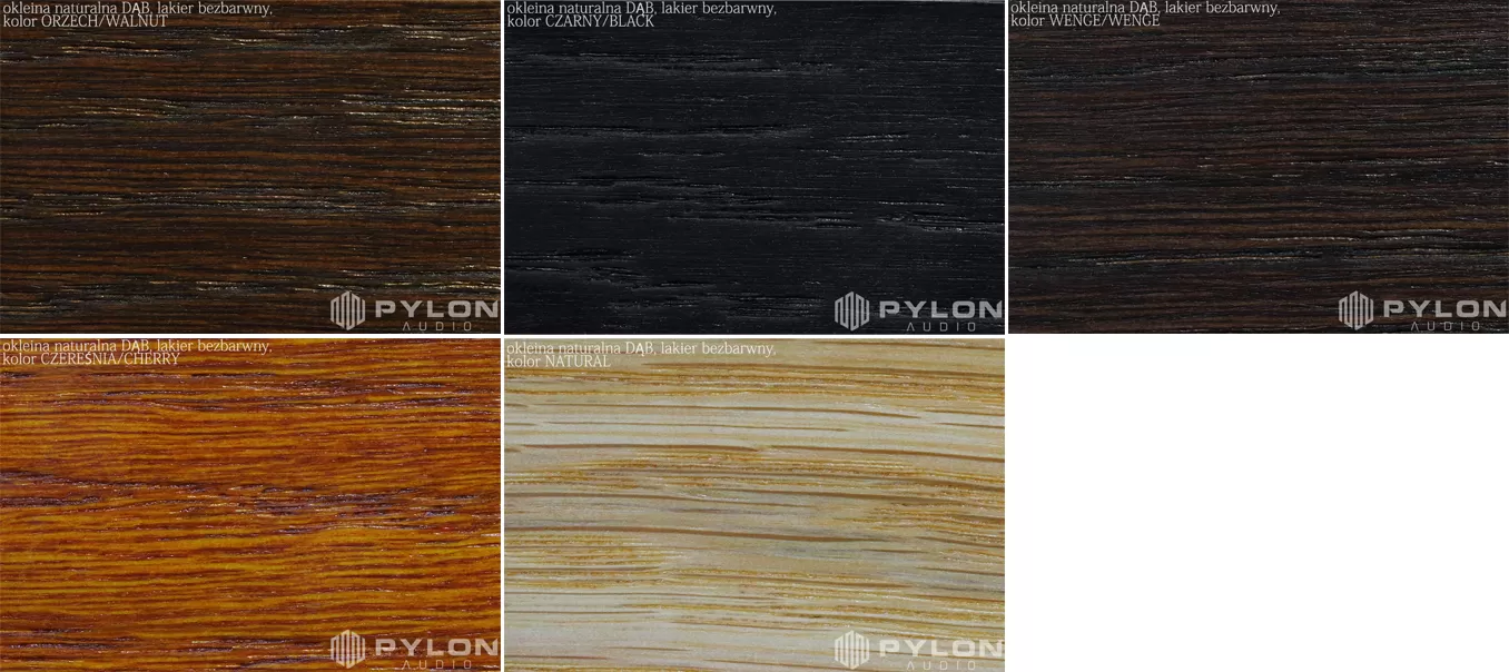 | Natural veneer OAK, colourless lacquer: wenge, black, walnut, cherry, natural. | |