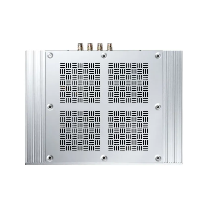 The M-80 housing consists of two aluminum side panels and a steel top panel. This three-piece housing construction increases rigidity and improves seismic resistance for altogether improved sound quality.