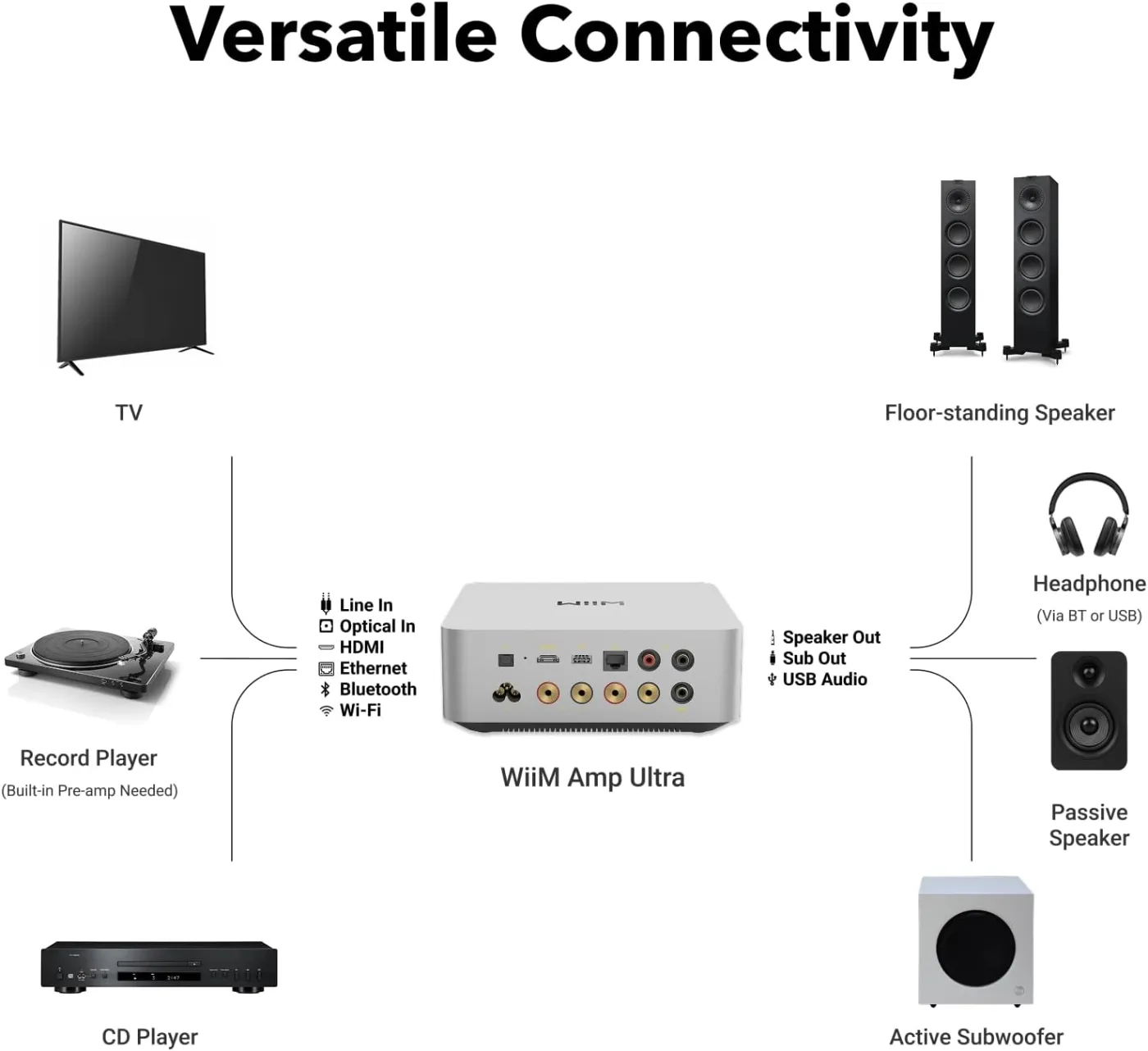 Meet the WiiM Amp Ultra – our most powerful streaming amp yet. Delivering 100W per channel at 8Ω with ultra-low distortion, it brings rich, high-fidelity sound to everything from vinyl to Spotify to cinematic TV audio—perfect for audiophiles, home theater enthusiasts, and smart home setups.